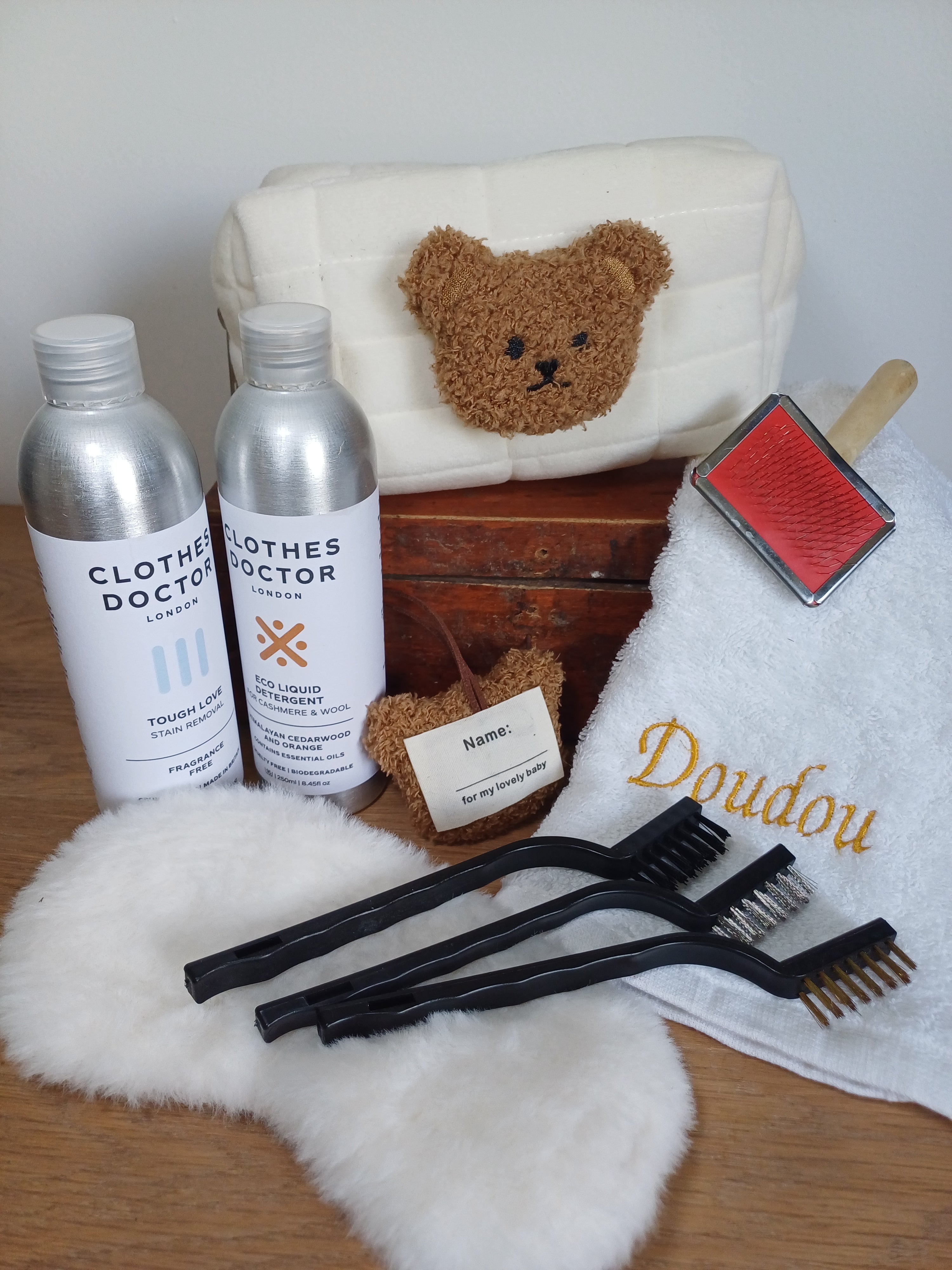 Voici nos deux kits complets pour prendre soin de vos doudous comme ils le méritent à la maison